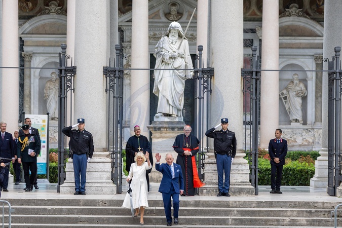 King Charles III and Queen Camilla visit the Papal Basilica and Abbey of St. Paul's Outside the Walls to attend an ecumenical service in recognition of His Majesty becoming 'Royal Confrater' of the Abbey of St Paul's. The Children of the Choir of His Majesty's Chapel Royal and the Choir of St. George's Chapel, Windsor, will perform. Rome, Italy 23 Oct 2025, Credit:Daniel Ibanez / Avalon