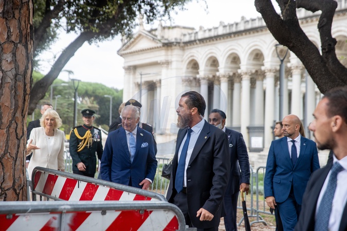 King Charles III and Queen Camilla visit the Papal Basilica and Abbey of St. Paul's Outside the Walls to attend an ecumenical service in recognition of His Majesty becoming 'Royal Confrater' of the Abbey of St Paul's. The Children of the Choir of His Majesty's Chapel Royal and the Choir of St. George's Chapel, Windsor, will perform. Rome, Italy 23 Oct 2025, Credit:Daniel Ibanez / Avalon