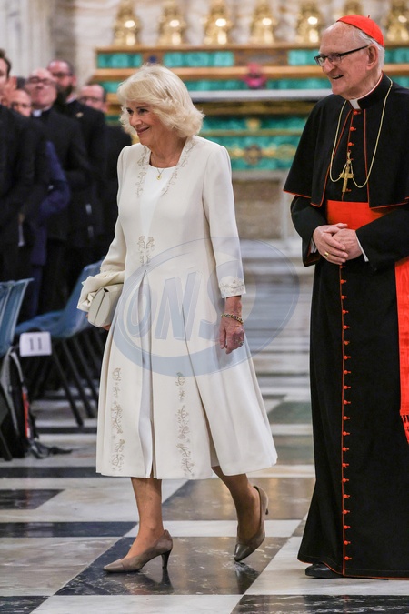 King Charles III and Queen Camilla visit the Papal Basilica and Abbey of St. Paul's Outside the Walls to attend an ecumenical service in recognition of His Majesty becoming 'Royal Confrater' of the Abbey of St Paul's. The Children of the Choir of His Majesty's Chapel Royal and the Choir of St. George's Chapel, Windsor, will perform. Rome, Italy 23 Oct 2025 *** Local Caption *** ROME, I - OCTOBER 23: King Charles III and Queen Camilla leave St. Paul Basilica after an ecumenical Service of Prayer on October 23, 2025 in Rome, Italy. During this historic State Visit, King Charles III and Queen Camilla will meet Pope Leo XIV for the first time since he was elected in May 2025. The King and Queen will join the Catholic Church's 2025 Jubilee Year celebrations, during which the heads of the Catholic Church and Church of England will pray together, the first time the British monarch and pontiff have done so at a church service since the English Reformation. (Photo by Franco Origlia/Getty Images), Credit:Franco Origlia / Avalon