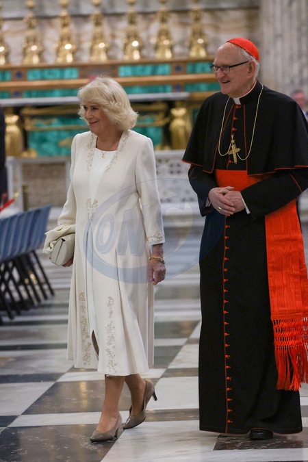 King Charles III and Queen Camilla visit the Papal Basilica and Abbey of St. Paul's Outside the Walls to attend an ecumenical service in recognition of His Majesty becoming 'Royal Confrater' of the Abbey of St Paul's. The Children of the Choir of His Majesty's Chapel Royal and the Choir of St. George's Chapel, Windsor, will perform. Rome, Italy 23 Oct 2025 *** Local Caption *** ROME, I - OCTOBER 23: King Charles III and Queen Camilla leave St. Paul Basilica after an ecumenical Service of Prayer on October 23, 2025 in Rome, Italy. During this historic State Visit, King Charles III and Queen Camilla will meet Pope Leo XIV for the first time since he was elected in May 2025. The King and Queen will join the Catholic Church's 2025 Jubilee Year celebrations, during which the heads of the Catholic Church and Church of England will pray together, the first time the British monarch and pontiff have done so at a church service since the English Reformation. (Photo by Franco Origlia/Getty Images), Credit:Franco Origlia / Avalon
