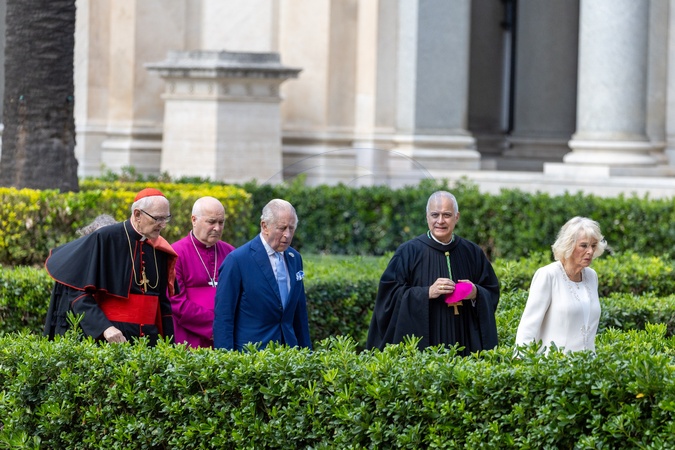 King Charles III and Queen Camilla visit the Papal Basilica and Abbey of St. Paul's Outside the Walls to attend an ecumenical service in recognition of His Majesty becoming 'Royal Confrater' of the Abbey of St Paul's. The Children of the Choir of His Majesty's Chapel Royal and the Choir of St. George's Chapel, Windsor, will perform. Rome, Italy 23 Oct 2025, Credit:Daniel Ibanez / Avalon