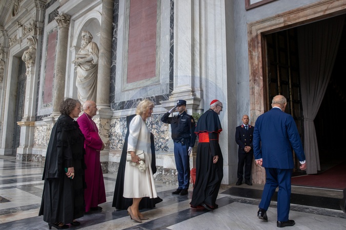 King Charles III and Queen Camilla visit the Papal Basilica and Abbey of St. Paul's Outside the Walls to attend an ecumenical service in recognition of His Majesty becoming 'Royal Confrater' of the Abbey of St Paul's. The Children of the Choir of His Majesty's Chapel Royal and the Choir of St. George's Chapel, Windsor, will perform. Rome, Italy 23 Oct 2025, Credit:Daniel Ibanez / Avalon