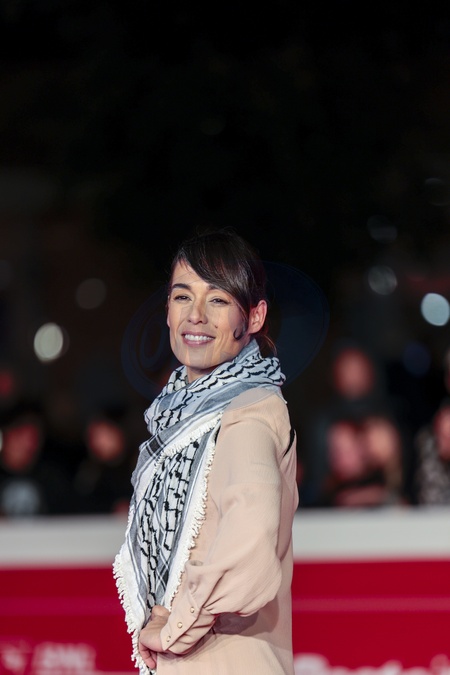 Diane Fleri indossa una kefiah attends the "Prima Di Noi" red carpet during the 20th Rome Film Festival at Auditorium Parco Della Musica on October 23, 2025 in Rome, Italy., Credit:Cristiano Minichiello / Avalon