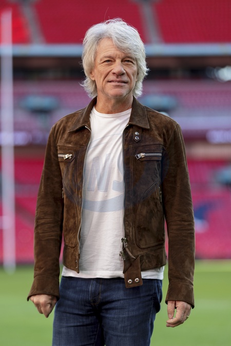 Jon Bon Jovi poses for photos on the pitch after a press conference at Wembley Stadium, in London, UK, on 24th October 2025, Credit:James Shaw / Avalon