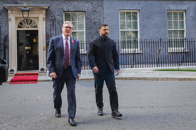 London, UK. 24th Oct 2025. Volodymyr Zelenskyy, President of Ukraine,and Sir Keir Starmer, Prime Minister of the United Kingdom walk from 10 Downing Street to the Foreign Office, where they are greeted by Ukrainian children with flags. Starmer will host Zelenskyy and other leaders for meetings of the 'Coalition of the Willing' at the Foreign Office., Credit:Imageplotter / Avalon