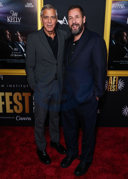 HOLLYWOOD, LOS ANGELES, CALIFORNIA, USA - OCTOBER 23: American actor, filmmaker, activist, and humanitarian George Clooney and American actor and comedian Adam Sandler arrive at the 2025 AFI (American Film Institute) Fest Presented By Canva - Premiere Of Netflix's 'Jay Kelly' held at the TCL Chinese Theatre IMAX on October 23, 2025 in Hollywood, Los Angeles, California, United States., Credit:Xavier Collin / Avalon
