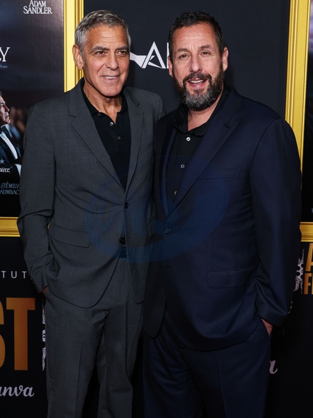 HOLLYWOOD, LOS ANGELES, CALIFORNIA, USA - OCTOBER 23: American actor, filmmaker, activist, and humanitarian George Clooney and American actor and comedian Adam Sandler arrive at the 2025 AFI (American Film Institute) Fest Presented By Canva - Premiere Of Netflix's 'Jay Kelly' held at the TCL Chinese Theatre IMAX on October 23, 2025 in Hollywood, Los Angeles, California, United States., Credit:Xavier Collin / Avalon