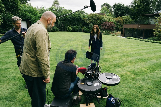 (L to R) Director Yorgos Lanthimos, director of photography Robbie Ryan and actor Emma Stone on the set of "Bugonia" (2025)., Credit:Atsushi Nishijima/Focus Features / Avalon