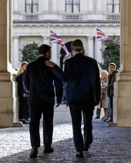 24/10/2025. London, United Kingdom. Prime Minister Keir Starmer hosts a Coalition of the Willing meeting alongside President of Ukraine Volodymyr Zelenskyy, Prime Minister of Denmark Mette Frederiksen, Prime Minister of the Netherlands Dick Schoof and Secretary General of NATO Mark Rutte at the Foreign Commonwealth and Development Office., Credit:Lauren Hurley / Avalon