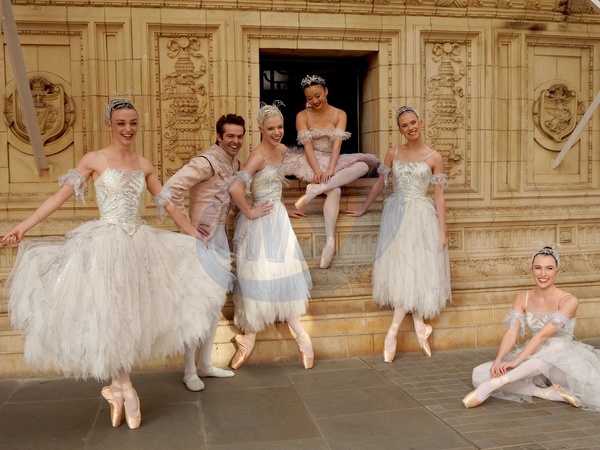 This Friday 24 October, six dancers from Birmingham Royal Ballet, in traditional ballet garb, on the Royal Albert Hall's South Steps. This is to promote The Nutcracker this Christmas. Birmingham Royal Ballet will be performing The Nutcracker at the Royal Albert Hall from December 29 to December 31, 2025, featuring the company's dancers., Credit:Alexander Seale / Avalon