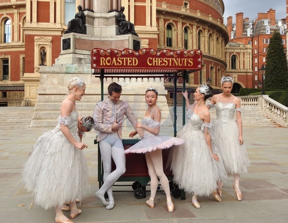 This Friday 24 October, six dancers from Birmingham Royal Ballet, in traditional ballet garb, on the Royal Albert Hall’s South Steps. This is to promote The Nutcracker this Christmas. Birmingham Royal Ballet will be performing The Nutcracker at the Royal