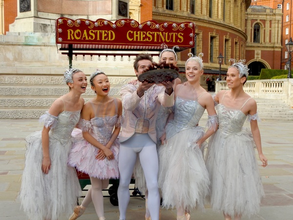 This Friday 24 October, six dancers from Birmingham Royal Ballet, in traditional ballet garb, on the Royal Albert Hall’s South Steps. This is to promote The Nutcracker this Christmas. Birmingham Royal Ballet will be performing The Nutcracker at the Royal