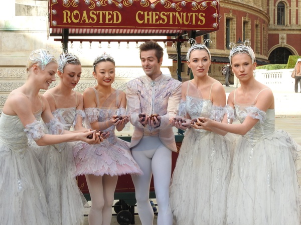 This Friday 24 October, six dancers from Birmingham Royal Ballet, in traditional ballet garb, on the Royal Albert Hall’s South Steps. This is to promote The Nutcracker this Christmas. Birmingham Royal Ballet will be performing The Nutcracker at the Royal
