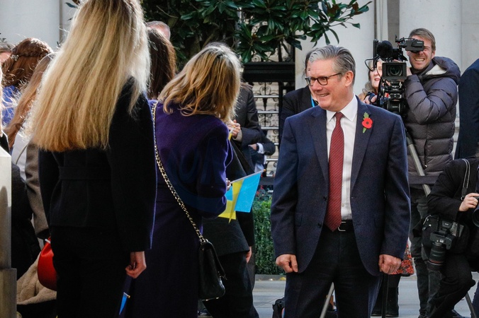 Volodymyr Zelenskyy and Sir Keir Starmer walk to the Foreign Office, greeted by Ukrainian childrenDowning Street, London, UK