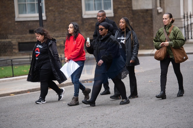 Campaigners from The United Friends and Family Campaign deliver a petition in Downing Street, London, England, UK on Saturday 25 October, 2025 to demand accountability and urgent reform over the deaths of their loved ones., Credit:Justin Ng / Avalon