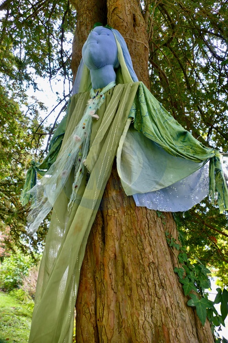 Characters on the Halloween trail. Friends of Caversham Court created a Halloween trail all made from recyclable materials placed around the picturesque Grade II listed grounds on the banks of the River Thames. Ghosts, witches, owls, goblins, Guy Fawkes and Cruella Deville complete with a Dalmation in her hand bag were on display to celebrate Halloween.Caversham Court garden is of national importance and listed in the English Heritage 'Register of English Parks and Gardens ' of special historic interest in England'., Credit:Geoffrey Swaine / Avalon