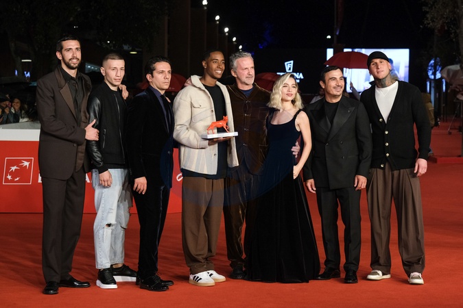 Justin De Vivo, Roberto Proia, Beatrice Puccilli, Francesco Di Leva and Luca Petrini pose with the Special Jury Prize Award for '40 Secondi' duringthe 20th Rome Film Festival at Auditorium Parco Della Musica in Rome. 25 October 2025, Credit:Davide Di Lalla - Unicode Images / Avalon