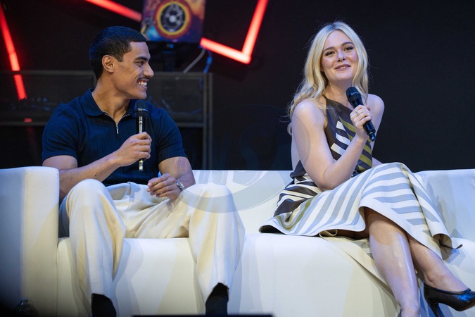 Dimitrius Schuster-Koloamatangi and Elle Fanning attend the MCM Comic Con London Panel of 20th Century Studios' 'Predator: Badlands' at London ExCeL, Credit:Lounis Tiar / Avalon