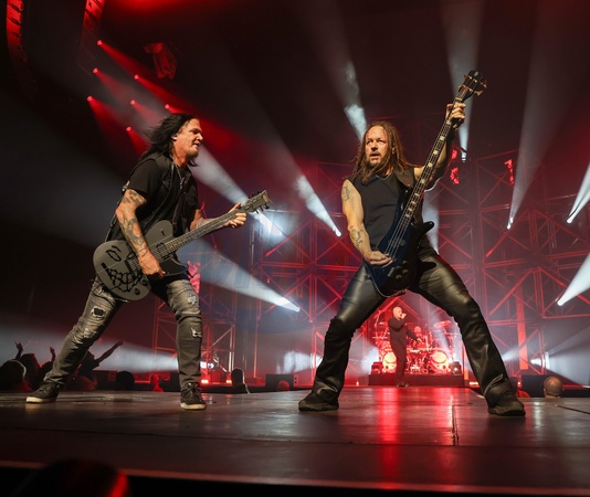 Dan Donegan and John Moyer of Disturbed performing at the O2 Arena London United Kingdom 26th October 2025 on their The Sickness 25th Anniversary Tour, Credit:Ray Hill / Avalon