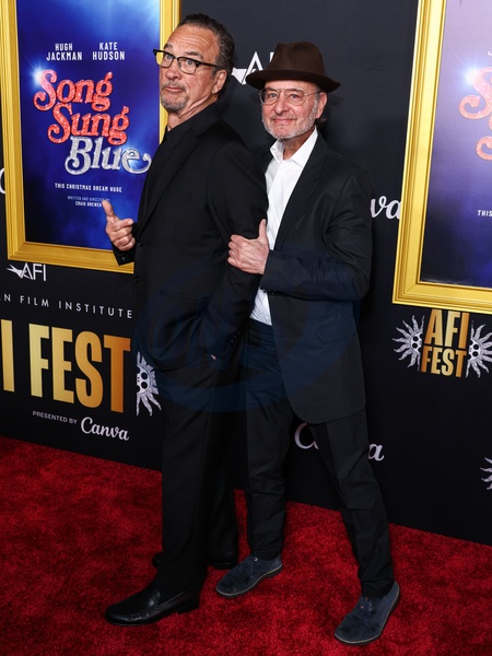 HOLLYWOOD, LOS ANGELES, CALIFORNIA, USA - OCTOBER 26: American actor, comedian, producer, writer, and director Jim Belushi and American actor, director, producer, writer, and activist Fisher Stevens arrive at the 2025 AFI (American Film Institute) Fest Presented By Canva - Closing Night Gala Premiere Of Focus Features' 'Song Sung Blue' held at the TCL Chinese Theatre IMAX on October 26, 2025 in Hollywood, Los Angeles, California, United States., Credit:Xavier Collin / Avalon