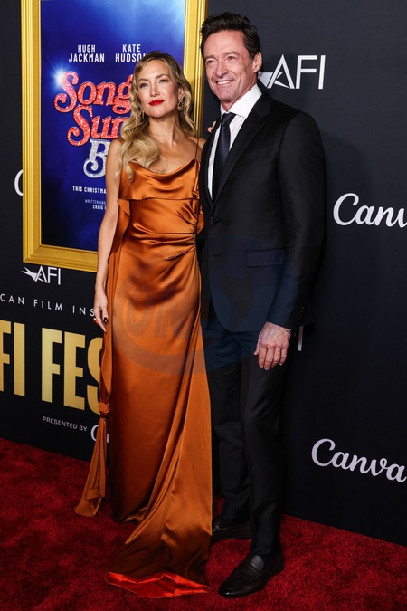 HOLLYWOOD, LOS ANGELES, CALIFORNIA, USA - OCTOBER 26: American actress, producer, director, and entrepreneur Kate Hudson and Australian actor, singer, and producer Hugh Jackman arrive at the 2025 AFI (American Film Institute) Fest Presented By Canva - Closing Night Gala Premiere Of Focus Features' 'Song Sung Blue' held at the TCL Chinese Theatre IMAX on October 26, 2025 in Hollywood, Los Angeles, California, United States., Credit:Xavier Collin / Avalon