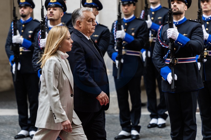 27/10/2025 Rome, The Prime Minister receives the Prime Minister of Hungary in the photo the President of the Council of Ministers Giorgia Meloni and the Prime Minister of Hungary Viktor Orban, Credit:Francesco Fotia / Avalon