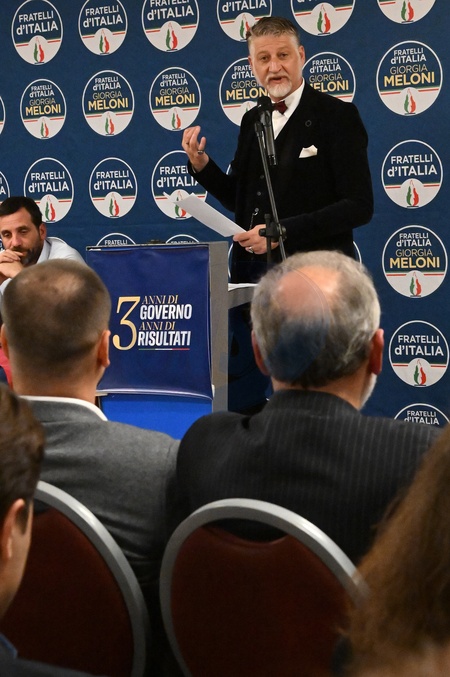 October 25, 2025, Prato, Brothers of Italy initiative to celebrate three years of the Meloni government. Pictured is Alessandro Giuli, Minister of Culture., Credit:Aleandro Biagianti / Avalon
