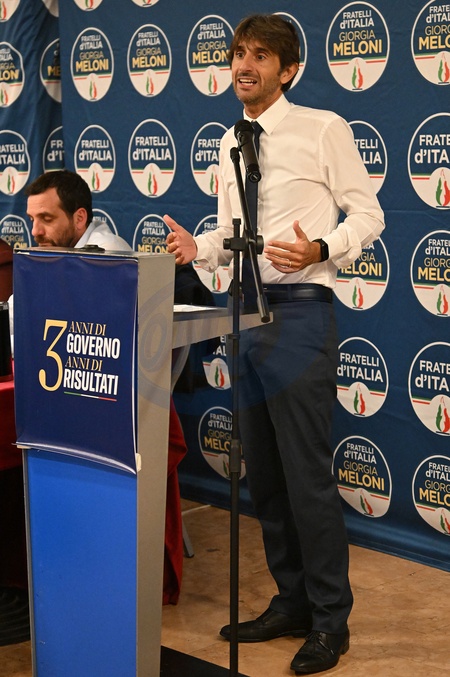 October 25, 2025, Prato, Brothers of Italy initiative to celebrate three years of the Meloni government. Pictured: Giovanni Donzelli, Credit:Aleandro Biagianti / Avalon