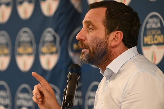 October 25, 2025, Prato, Fratelli d'Italia initiative to celebrate three years of the Meloni government. Pictured is Alessandro Tomasi, mayor of Pistoia., Credit:Aleandro Biagianti / Avalon