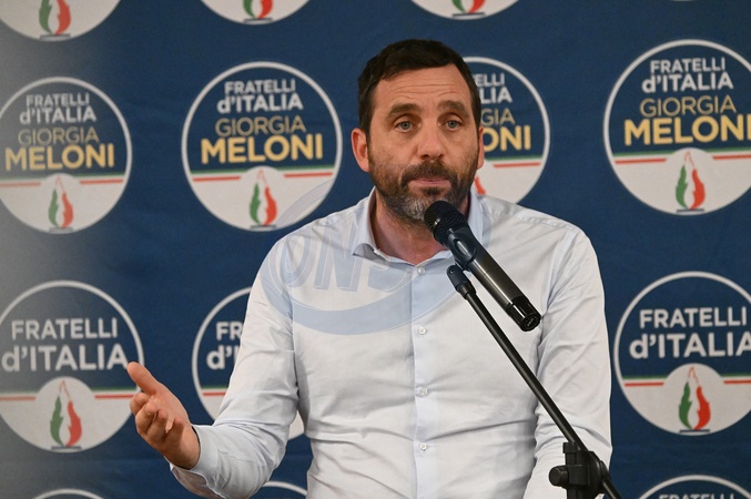 October 25, 2025, Prato, Fratelli d'Italia initiative to celebrate three years of the Meloni government. Pictured is Alessandro Tomasi, mayor of Pistoia., Credit:Aleandro Biagianti / Avalon