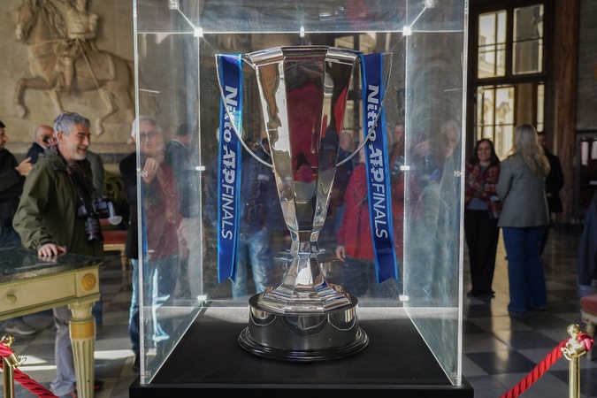 October 27, 2025, Turin, City Hall. The Nitto ATP Finals trophy stops at the city hall., Credit:Selene Daniele / Avalon