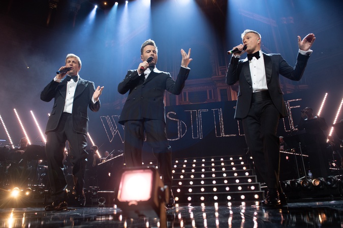 (L-R) - Kian Egan, Shane Filan and Nicky Byrne of Irish pop band Westlife perform with the Royal Philharmonic Concert Orchestra, at Royal Albert Hall, London, England, UK on Monday 27 October 2025 as part of Their 25th Anniversary World Tour., Credit:Justin Ng / Avalon