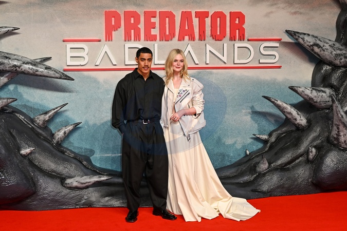 Dimitrius Schuster-Koloamatangi and Elle Fanning attends "Predator: Badlands" UK Special Screening at the BFI IMAX in London, England. UK. Monday 27th October 2025, Credit:James Warren / Avalon