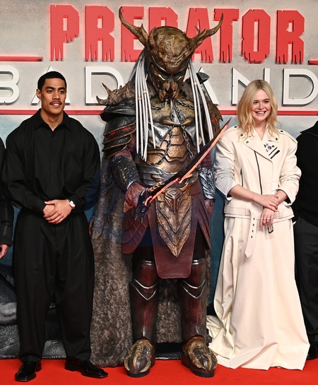 Dimitrius Schuster-Koloamatangi and Elle Fanning attends "Predator: Badlands" UK Special Screening at the BFI IMAX in London, England. UK. Monday 27th October 2025, Credit:James Warren / Avalon
