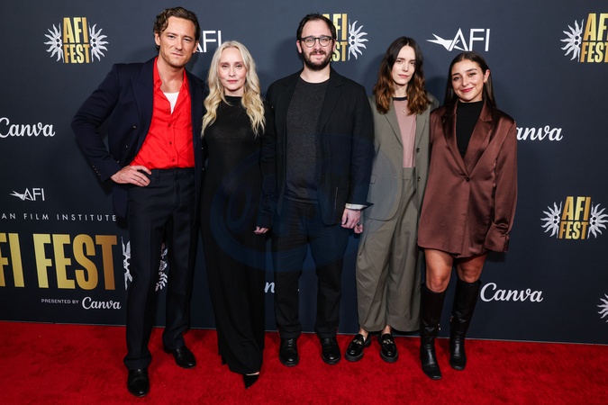 HOLLYWOOD, LOS ANGELES, CALIFORNIA, USA - OCTOBER 26: American actor Lewis Pullman, Norwegian filmmaker and actress Mona Fastvold, American film producer Andrew Morrison, French actress Stacy Martin and Maddie Browning arrive at the 2025 AFI (American Film Institute) Fest Presented By Canva - Special Screening Of Searchlight Pictures' 'The Testament Of Ann Lee' held at the TCL Chinese 6 Theatres on October 26, 2025 in Hollywood, Los Angeles, California, United States., Credit:Xavier Collin / Avalon