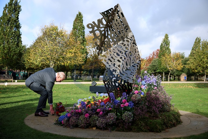 Britain's King Charles lays flowers as he attends the LGBTQ+ Armed Forces Dedication ceremony at the National Memorial Arboretum in Alrewas, Staffordshire, Britain, October 27, 2025. REUTERS/Phil, Credit:Phil Noble / Avalon