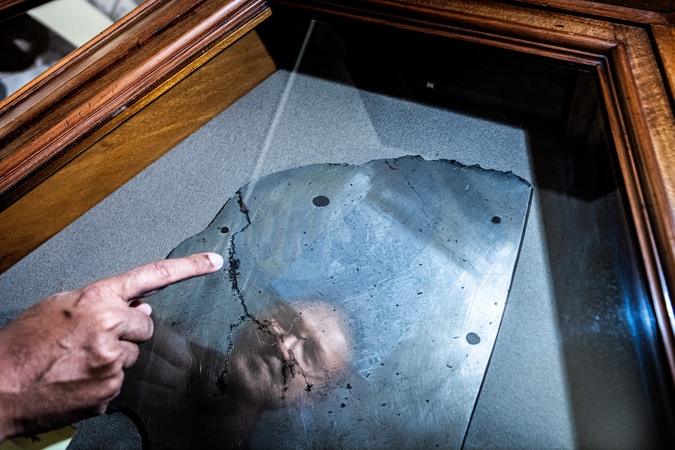 08/09/25 Albano Laziale, Vatican Observatory. Pictured is the director of the Observatory, Father Richard Anthony D'Souza. riflesso in un frammento di meteorite custodito in una teca The first Indian director of the Vatican Observatory, the Pope's astronomical observatory in Castel Gandolfo, led over time by Italian, Spanish, Northern European, and Anglo-Saxon astronomers. Father Richard Anthony D'Souza, born in 1978, is a Jesuit like Pope Francis. The Pope's astronomer believes that Leo XIV, the mathematician pontiff, is interested in how the results of science "can be used to help everyone.", Credit:Luigi Narici / Avalon