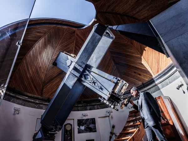 08/09/25 Albano Laziale, Vatican Observatory. Pictured is the director of the Observatory, Father Richard Anthony D'Souza, during a maintenance check on an old telescope in the observatory's dome. The first Indian director of the Vatican Observatory, the Pope's astronomical observatory in Castel Gandolfo, led over time by Italian, Spanish, Northern European, and Anglo-Saxon astronomers. Father Richard Anthony D'Souza, born in 1978, is a Jesuit like Pope Francis. The Pope's astronomer believes that Leo XIV, the mathematician pontiff, is interested in how the results of science "can be used to help everyone.", Credit:Luigi Narici / Avalon