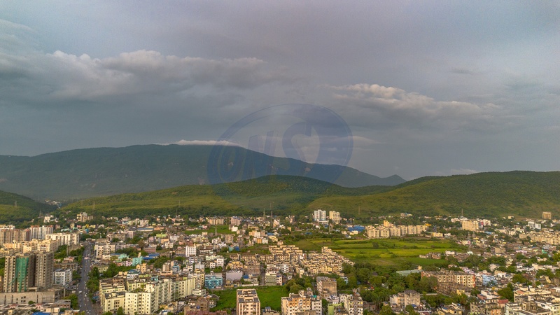 View of Jamshedpur's Dalma Hill range with dark clouds overhead after rainfall. Cyclone Montha preparations in eastern India as neighboring Jharkhand, along with Andhra Pradesh, Odisha and Chhattisgarh, braces for heavy rainfall and strong winds on October 28, 2025. Authorities issued alerts and prepared relief teams in vulnerable districts, while evacuations and transport suspensions took place across the Bay of Bengal coastal states., Credit:Yousuf Sarfaraz / Avalon