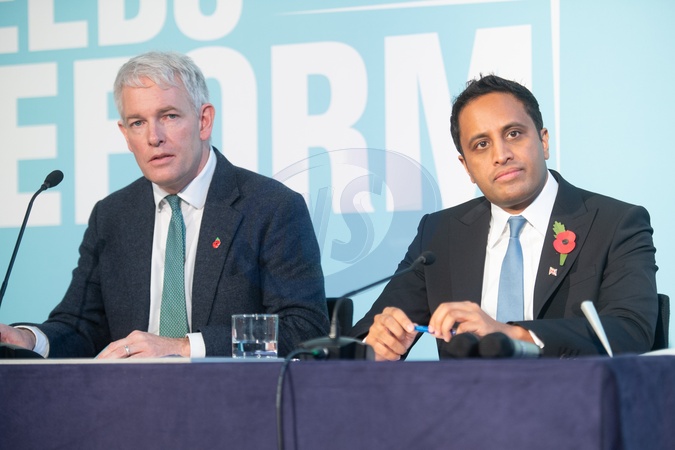 Reform UK MP Danny Kruger and Reform UK Head of DOGE (Department of Government Efficiency) Zia Yusuf speaks at a Reform UK Press Conference on Preparing for Government at Church House in London, England, UK on Tuesday 28 October, 2025., Credit:Justin Ng / Avalon