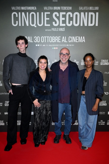 October 27, 2025, Milan, photocall for the film "Five Seconds." Pictured are Paolo Virzi, Pietro Paschini, Anna Lazzari, and Ilaria Ballantini., Credit:AGF / Avalon