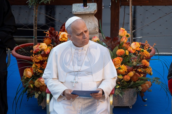 Pope Leo XIV attends an inter-religious meeting to pray for peace inside the Colosseum in Rome, Italy on 28 October 2025., Credit:Stefano Costantino TTL / POOL / Avalon