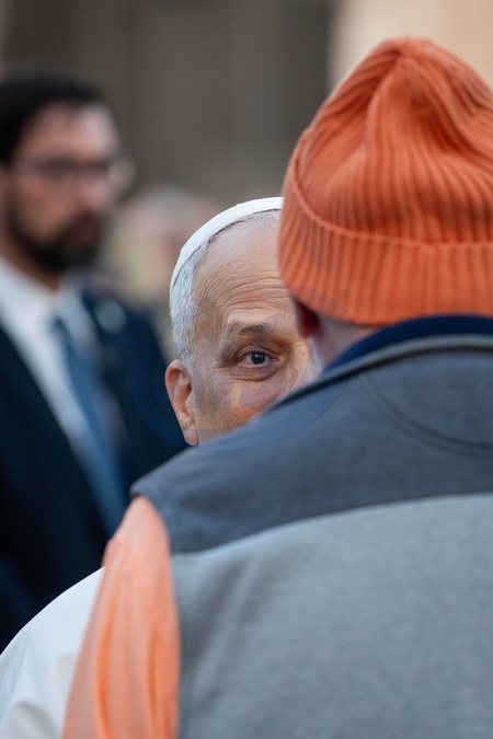 Pope Leo XIV attends an inter-religious meeting to pray for peace inside the Colosseum in Rome, Italy on 28 October 2025.