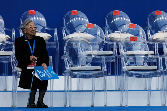 Peace activist Koko Kondo , survivor of the atomic bombing of Hiroshima, delivers a speech next to Pope Leo XIV during the closing ceremony of the International Meeting of Dialogue and Prayer for Peace of the Community of Sant'Egidio at the Colosseum, in Rome, Italy, 28 October 2025., Credit:Francesco Fotia / Avalon