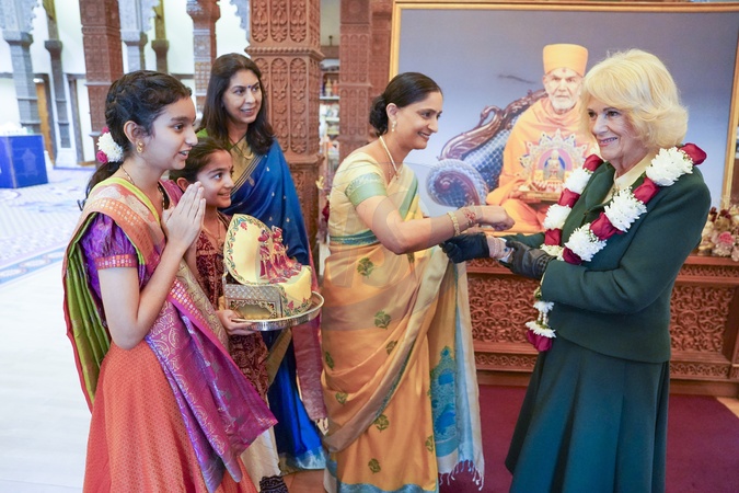 Their Majesties The King and Queen visited ‘Neasden Temple', to celebrate the Temple's 30th anniversary..The King and Queen observed spiritual ceremonies. Later the royal couple met.members of the congregation. Pool Picture Arthur Edwards, Credit:Arthur Edwards / Avalon