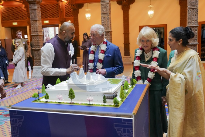 Their Majesties The King and Queen visited ‘Neasden Temple', to celebrate the Temple's 30th anniversary..The King and Queen observed spiritual ceremonies. Later the royal couple met.members of the congregation., Credit:Arthur Edwards / Avalon