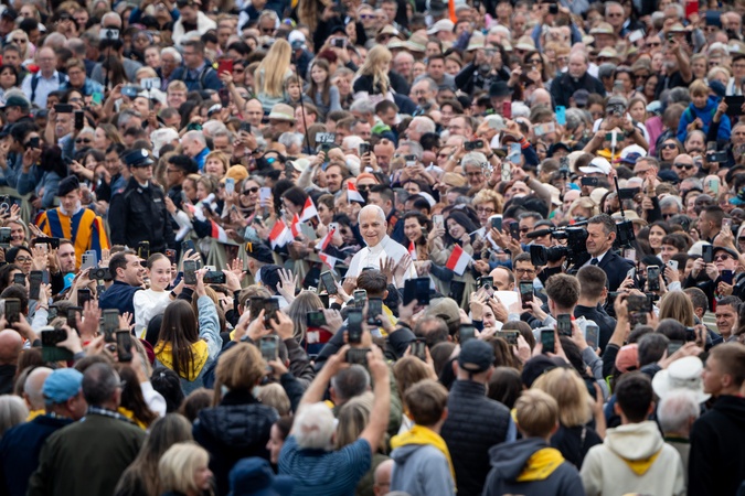 Pope Leo XIV leads his traditional Wednesday General Audience in St. Peter's Square in Vatican City, Vatican, on 28 October 2025.