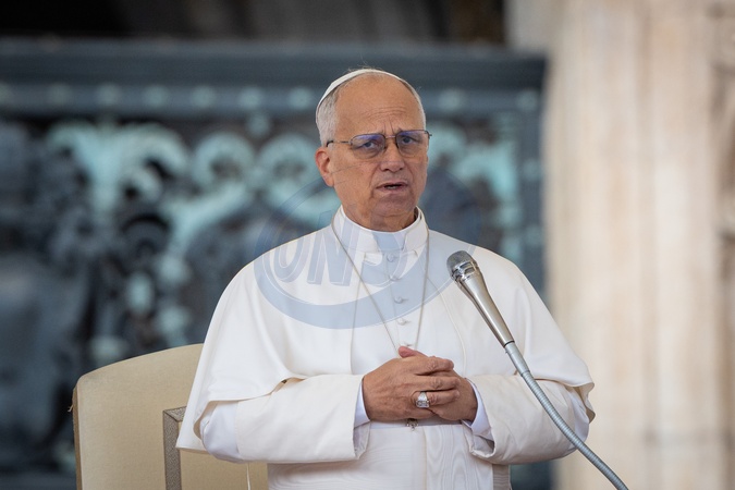 Pope Leo XIV leads his traditional Wednesday General Audience in St. Peter's Square in Vatican City, Vatican, on 28 October 2025.