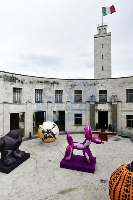 The Museo del Genio (Historical and Cultural Institute of the Italian Army's Engineer Corps) offers itself as a new cultural venue in the capital. View POP AIR. Ugo Nespolo presents eight enormous inflatable sculptures in the museum courtyard, each reproducing famous works by renowned artists: Venus de Milo, 2nd century BC; The Thinker by Auguste Rodin, 1902; Maman by Louise Bourgeois, 1999; Sphere within a Sphere by Arnaldo Pomodoro, 1991; Paloma by Fernando Botero, 1990; Head by Amedeo Modigliani, 1912; Balloon Dog by Jeff Koons, 2000; and Yellow Pumpkin by Yayoi Kusama, 1994. Rome, 30th of October 2025, Credit:Mimmo Frassineti / Avalon