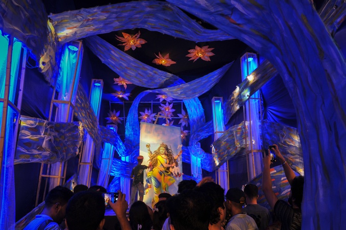Chattogram, Bangladesh – Beautifully adorned idols of Goddess Jagaddhatri are displayed on decorated stages across Chattogram city as devotees celebrate the Jagaddhatri Puja with devotion and festivity., Credit:Md Rafayat Haque Khan / Avalon